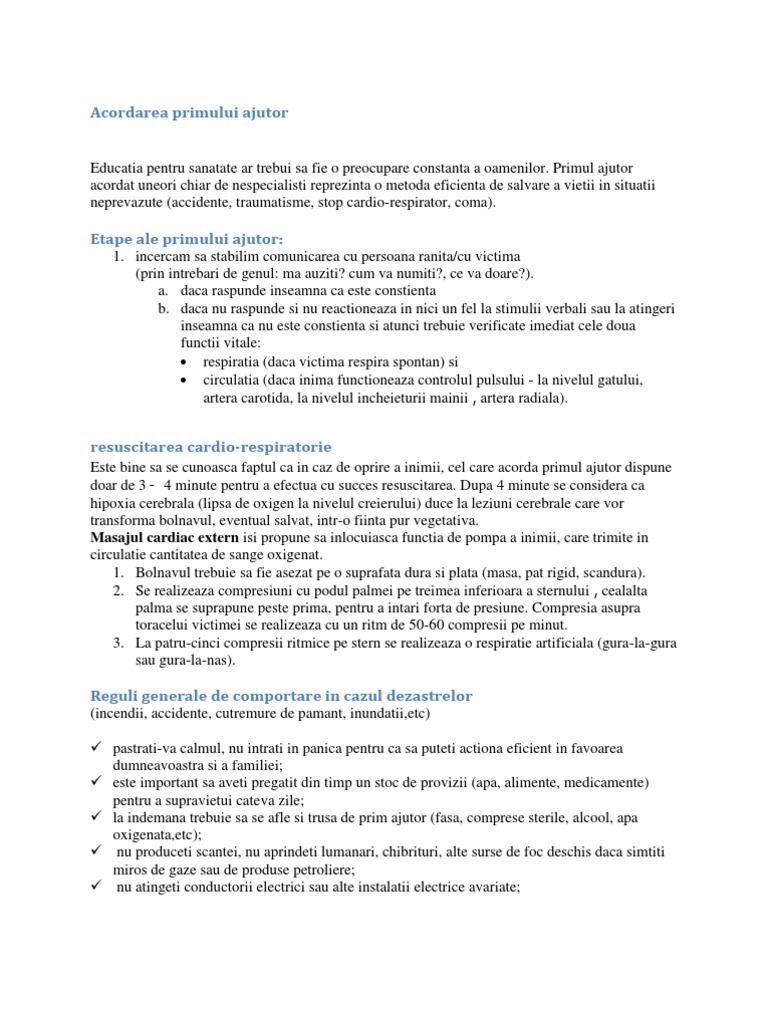 Primul Ajutor Medical In Caz De Situatii Exceptionale Si Accidente
