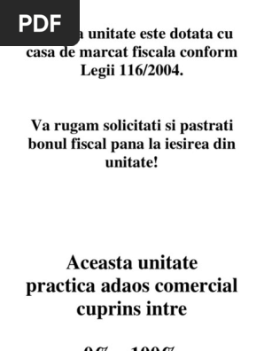 Aceasta Unitate Este Dotata Cu Casa De Marcat Fiscala Conform Legii 116