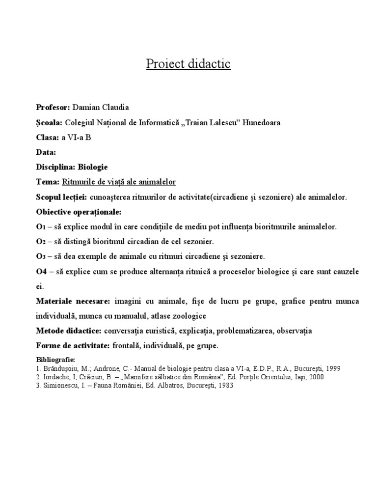 Bioritmuri Animale Clasa A Via