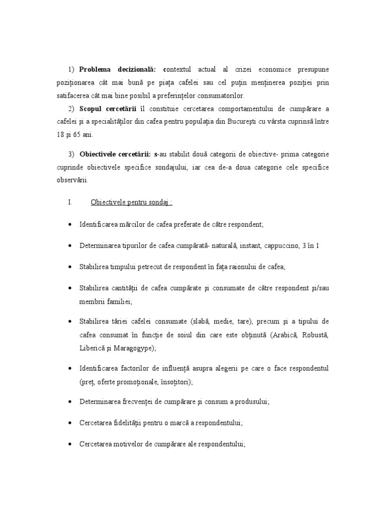 Proiect Cercetare Asupra Comportamentului Consumatorului De Cafea Marketing 190394