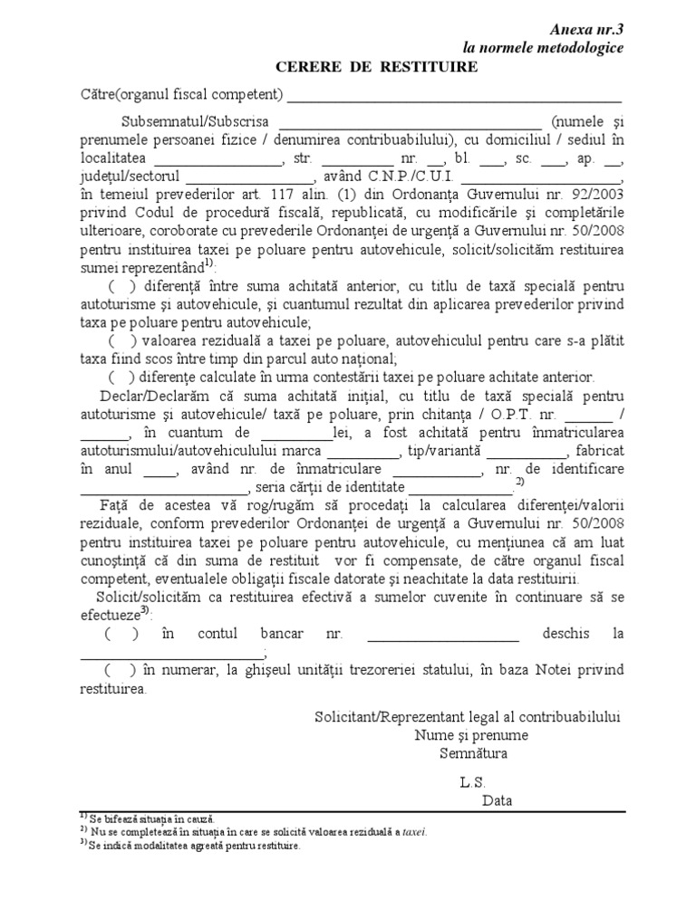 Taxa De Poluare 2011 Cerere Restituire Taxă De Poluare Formulare Tipizate Gratuite
