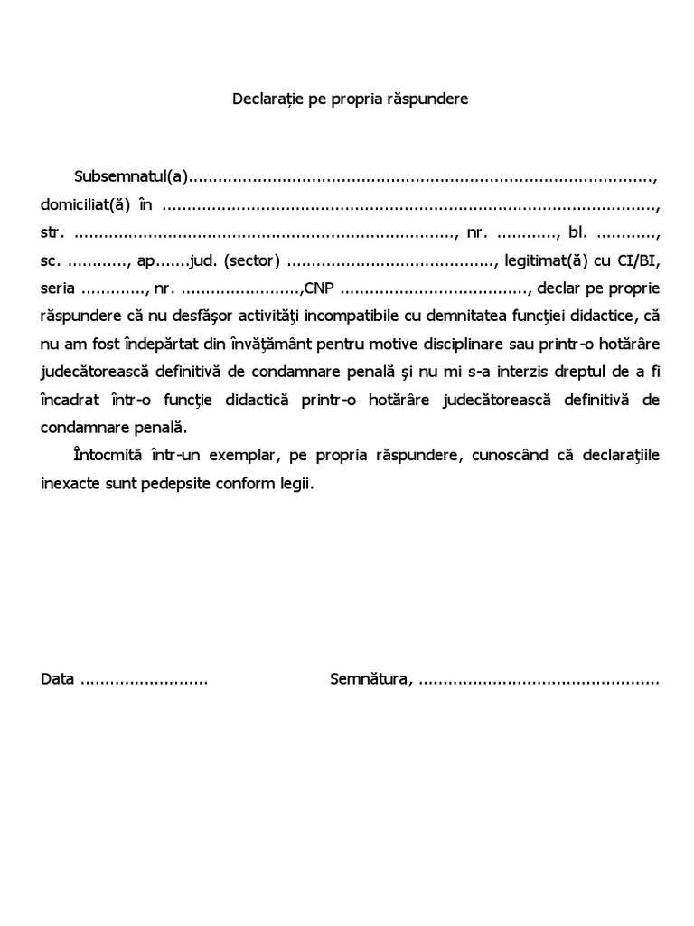 Descarcă Declarația Pe Propria Răspundere Noua Versiune