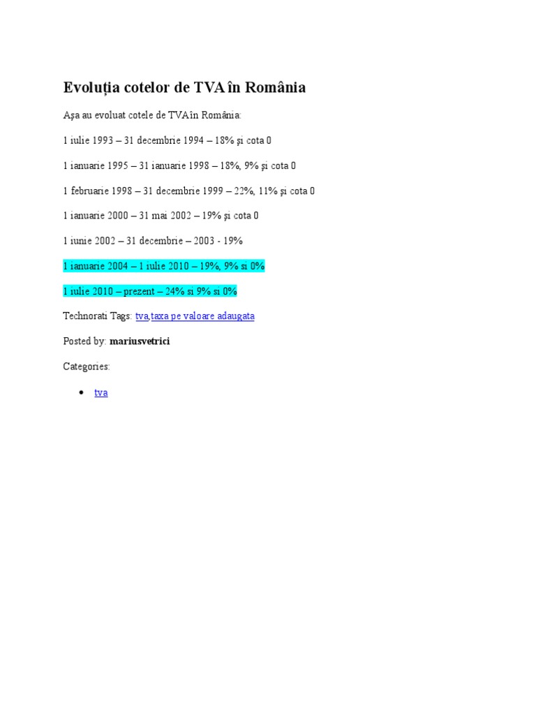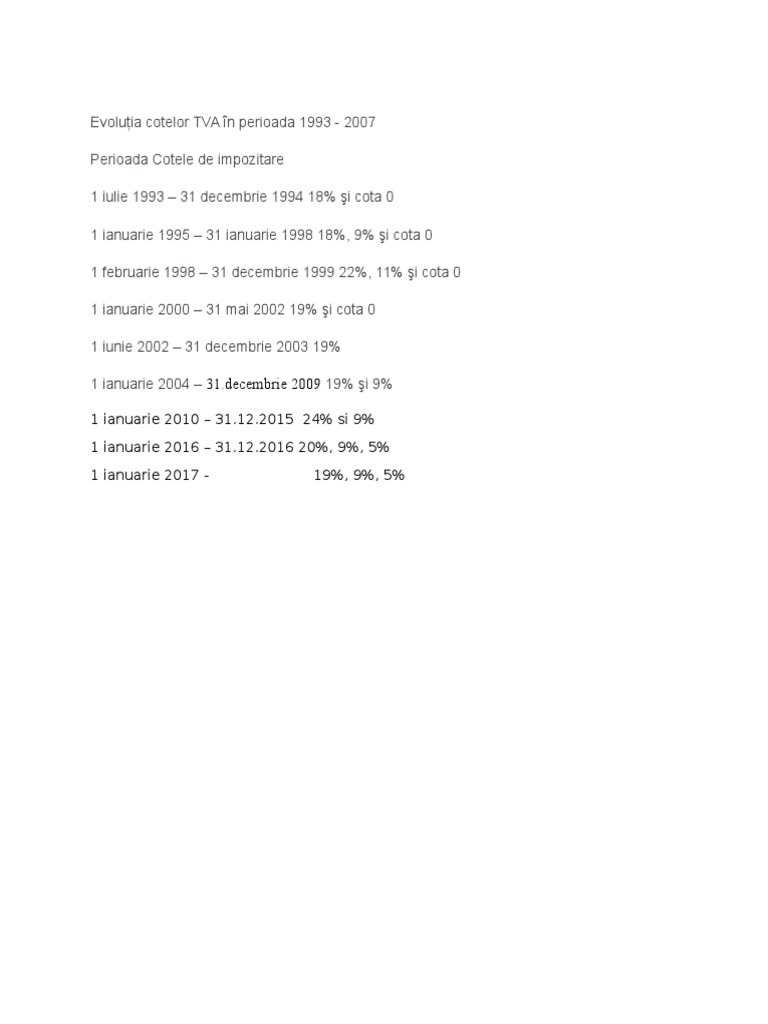 Evoluţia Cotelor Tva In Perioada 1993 2017