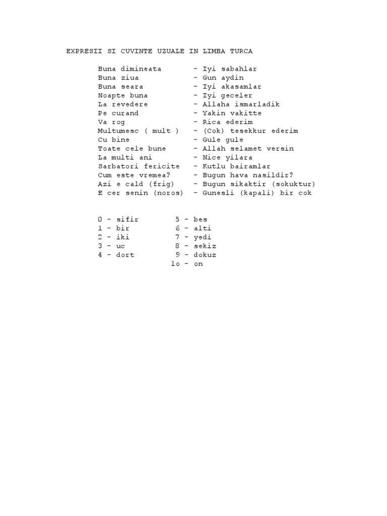 Expresii Si Cuvinte Uzuale In Limba Turca