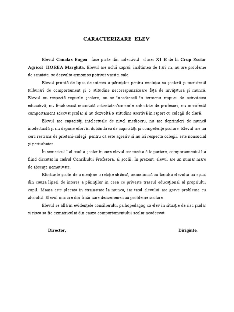 Referat Fisa De Caracterizare Elev 356935 Graduo