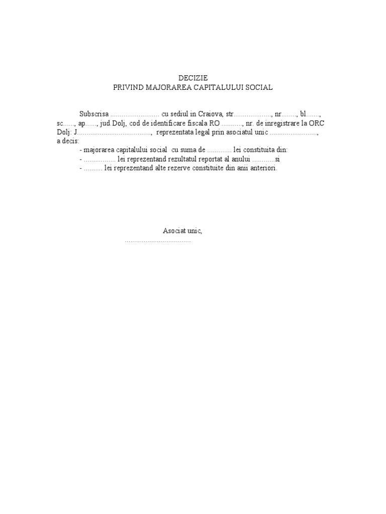 Decizie Majorare Capital Social