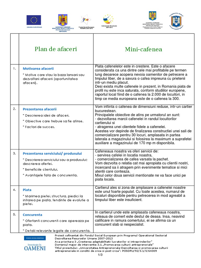 Plan De Afaceri Cafenea Educatie Antreprenoriala