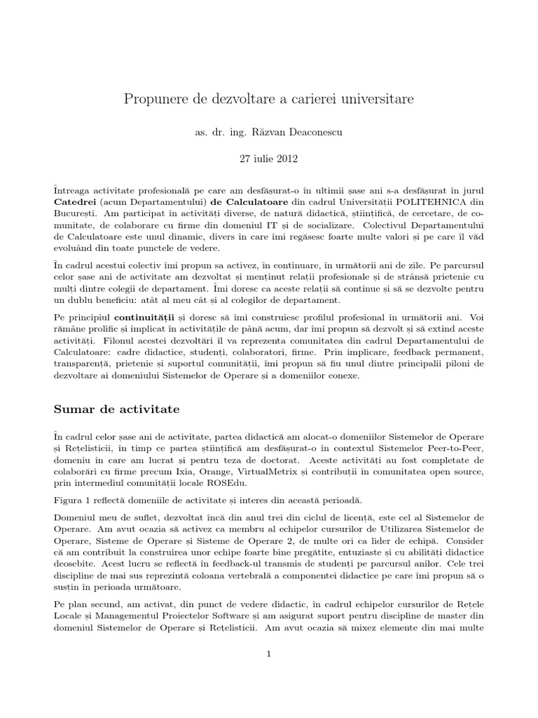 Propunere De Dezvoltare A Carierei Universitare Exemplu