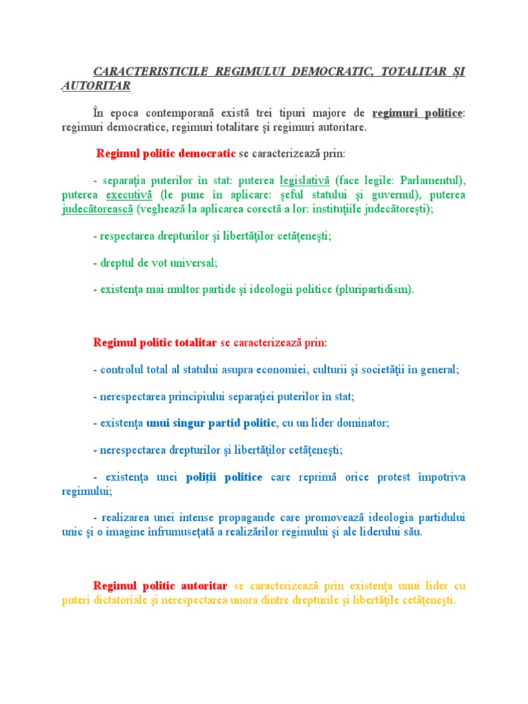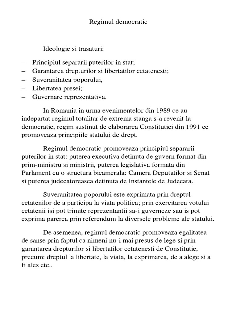 Caracteristicile Regimului Democratic