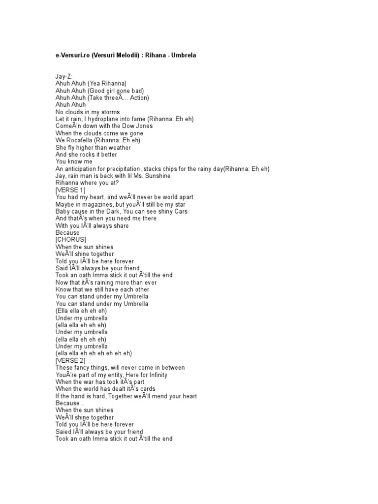 E Versuri Ro Rihana Umbrela Contemporary R B Nature Uji Coba Gratis 30 Hari Scribd