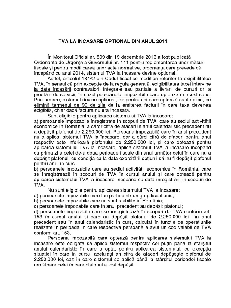 Ghid De Utilizare Pentru Aplicarea Sistemului Tva La Incasare Folosind Pachetul De Programe Contabile Omikont Pdf Free Download