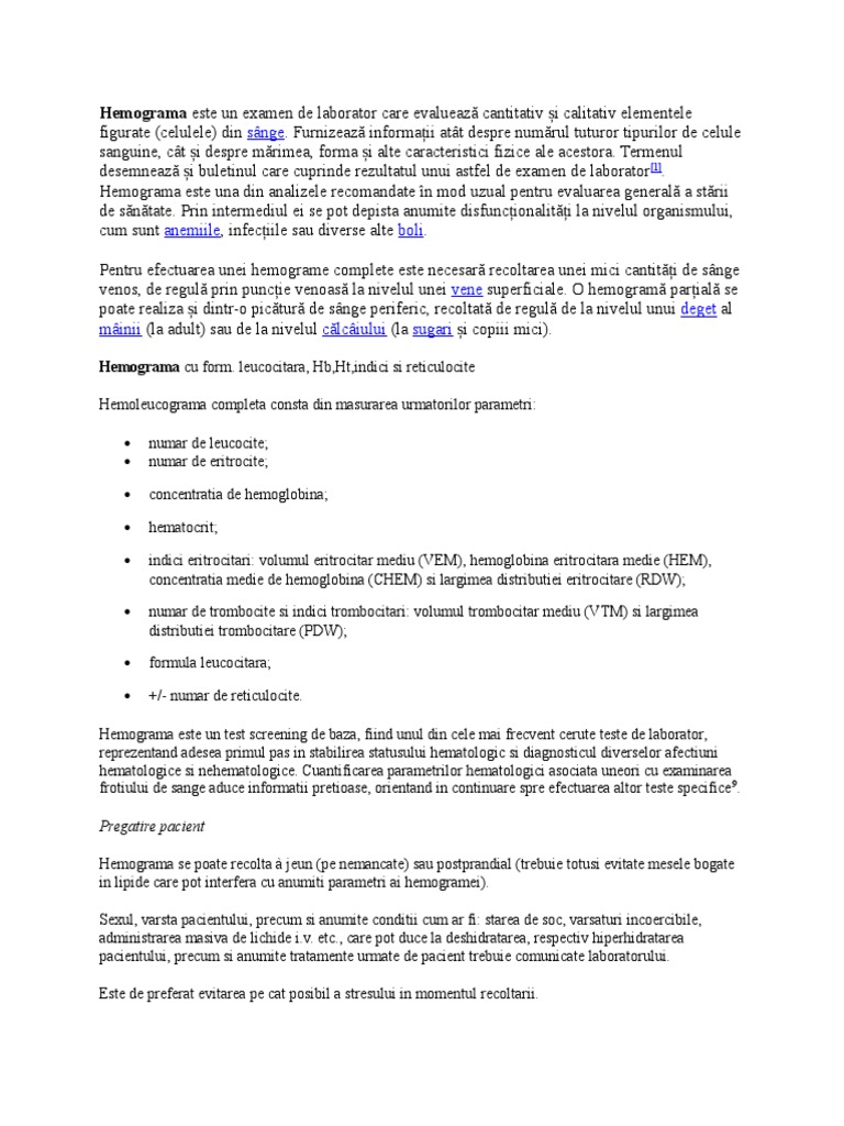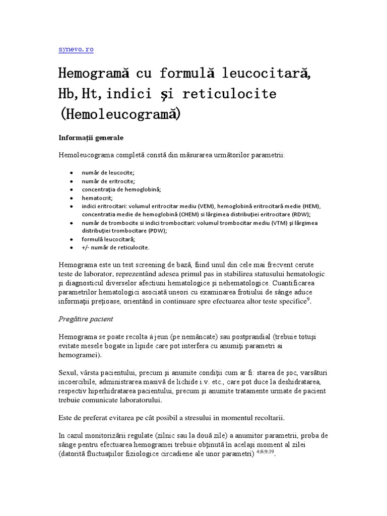 Anemie G L Hemograma Cu Form Leucocitara Hb Ht Indici Si Reticulocite Anemie Analize Medicale